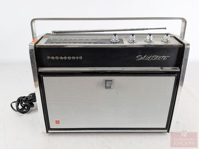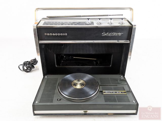 Radio vintage Panasonic Solid Stage avec tourne-disque intégré, faite au Japon par Matsushika Electric, datant des années 1950 et mesurant 14 pouces, radio fonctionnelle