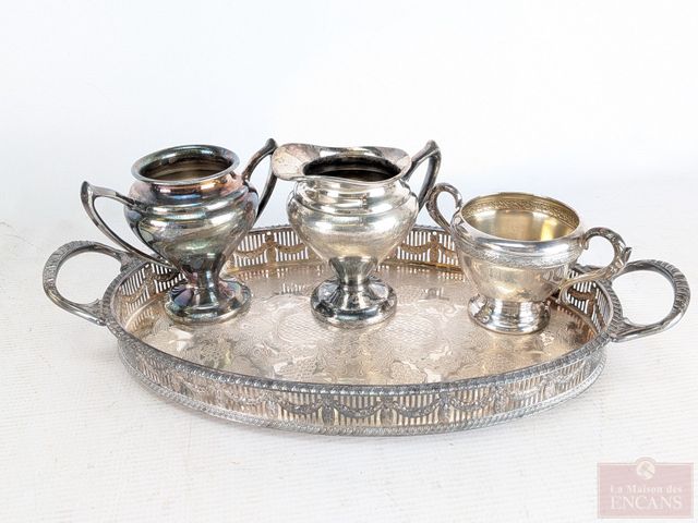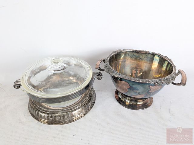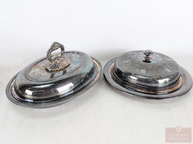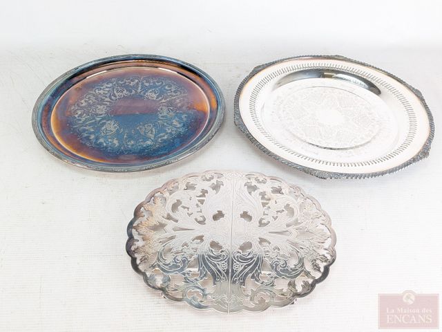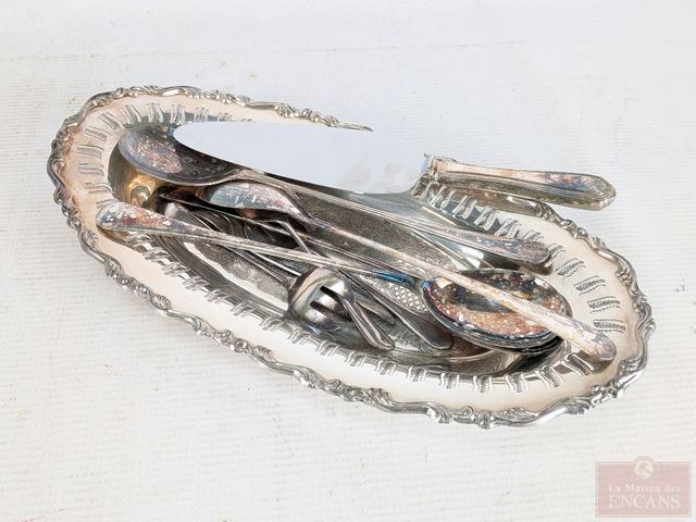 Lot d'argenterie comprenant plats de service et ustensiles, le plus grand plat de service mesurant 14 pouces de diamètre