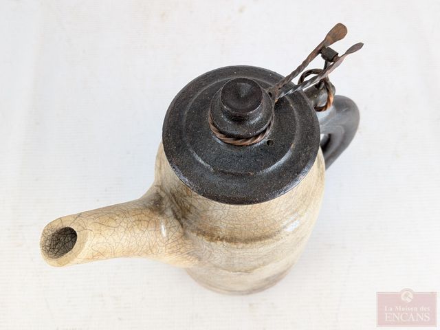 Lot # 34 - Théière en céramique Raku, signée et mesurant 10.25 pouces de hauteur