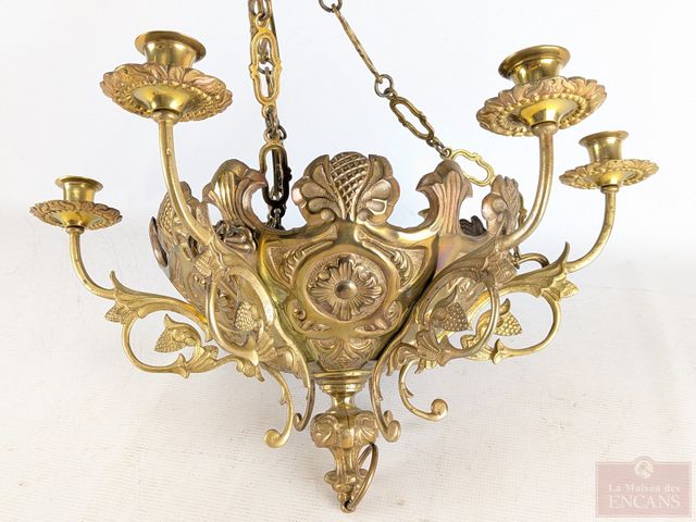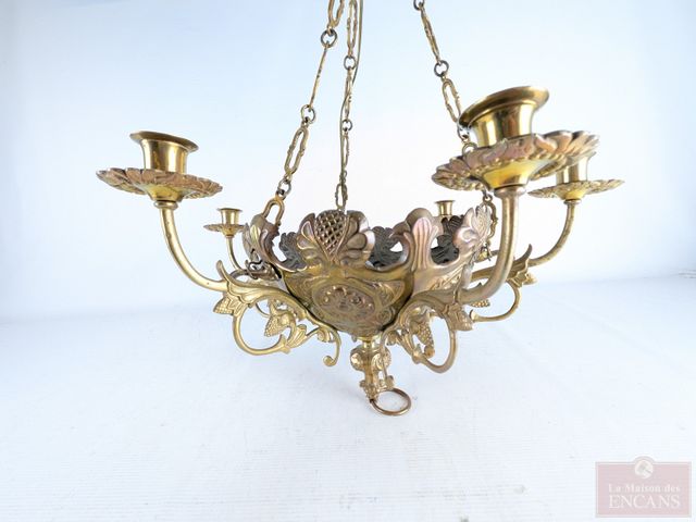 Lampe de sanctuaire d'église en bronze doré et laiton doré, datant du 19eme siècle et mesurant 14x20 pouces