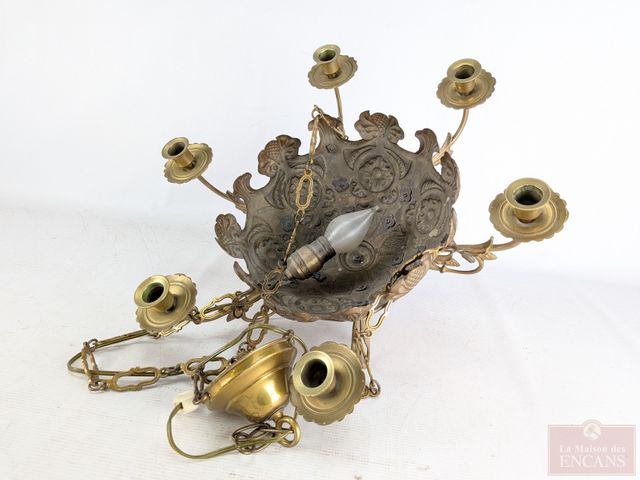 Lot # 124 - Lampe de sanctuaire d'église en bronze doré et laiton doré, datant du 19eme siècle et mesurant 14x20 pouces