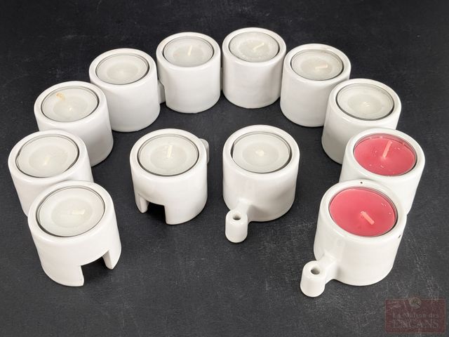 Ensemble de bougeoirs en céramique vintages, design par Ehlen Johansson, dans leur boite d'origine mesurant 10 pouces