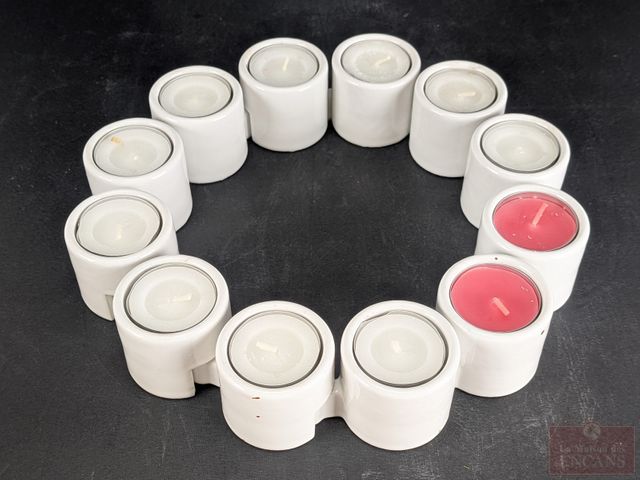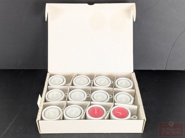Lot # 18 - Ensemble de bougeoirs en céramique vintages, design par Ehlen Johansson, dans leur boite d'origine mesurant 10 pouces