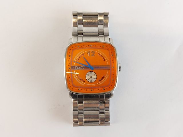Lot # 193 - Montre Dolce et Gabana en acier inoxydable - au quartz - fonctionnelle mais besoin d'une nouvelle batterie - 42.5mm avec la couronne SOLD