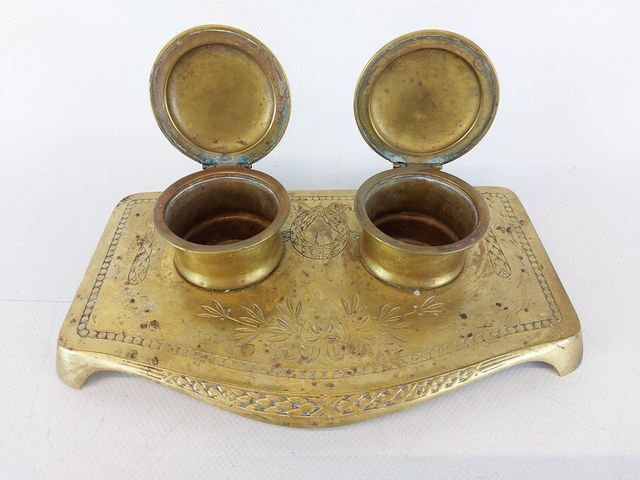 Lot # 148 - Lot de chandeliers anciens - plusieurs en laiton - avec un encrier en laiton - le plus grand mesurant 10 pouces de hauteur SOLD