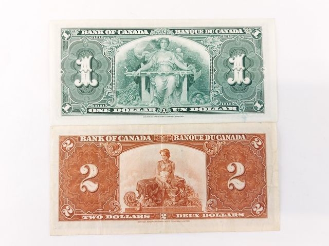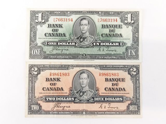 Lot # 69 - Deux billets de banque canadien - un dollar et deux dollars de 1937 VENDU