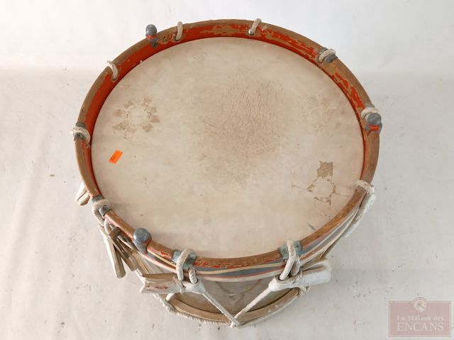 Lot # 46 - Tambour anglais de fanfare militaire en laiton, datant de la seconde guerre mondiale et mesurant 14.5 pouces de hauteur VENDU