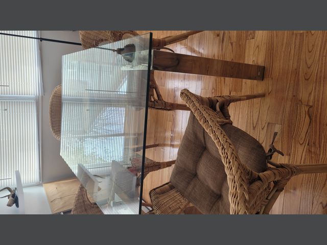Lot # 50 - Table en verre avec pattes en métal, mesurant 35.5x 60.75x30 pouces (devra être récupérée par l'acheteur à Dorval) SOLD
