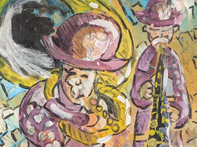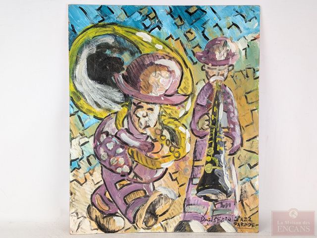 David SÉGUIN- Huile sur toile signée, mesurant 24x20 pouces et titrée Jazz Parade