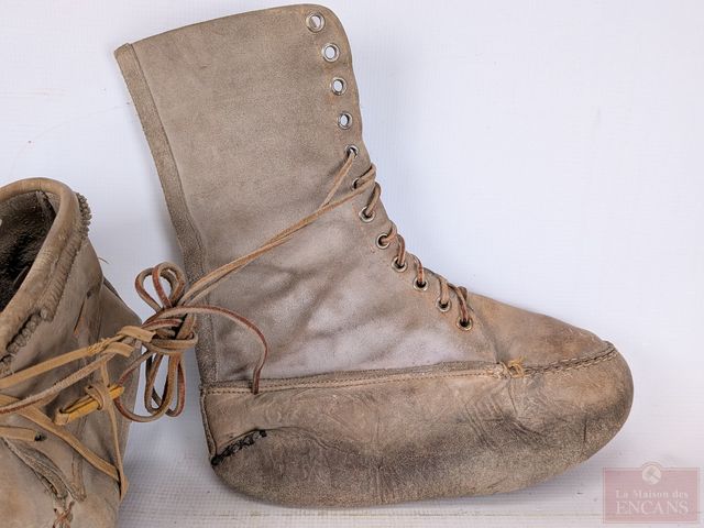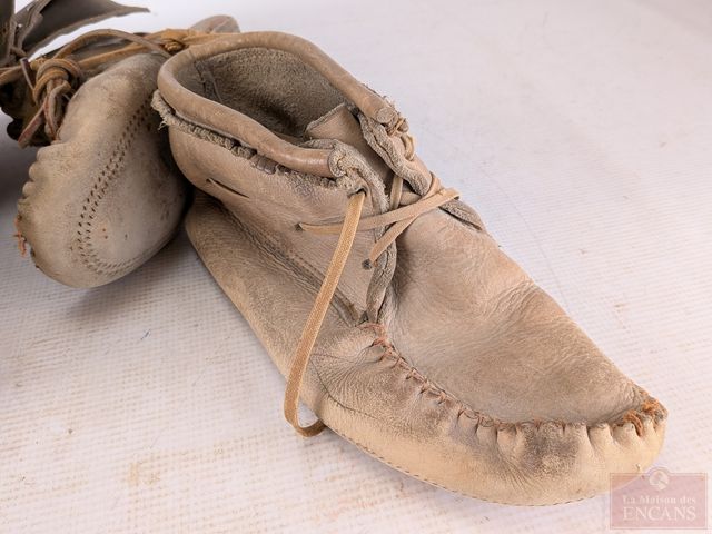 Lot # 26 - Paire de mocassins et paire de bottes inuites en cuir