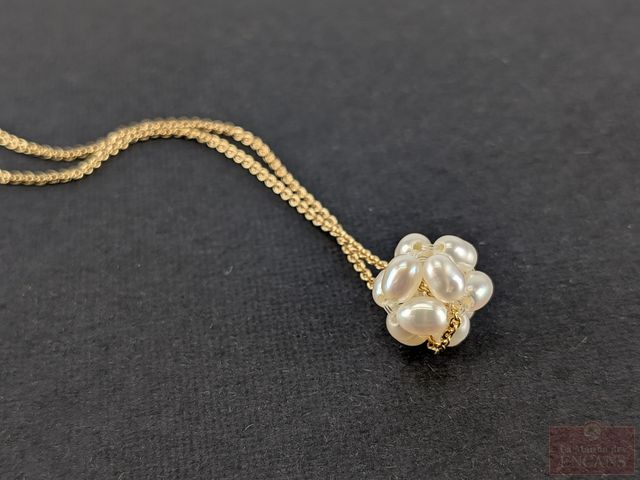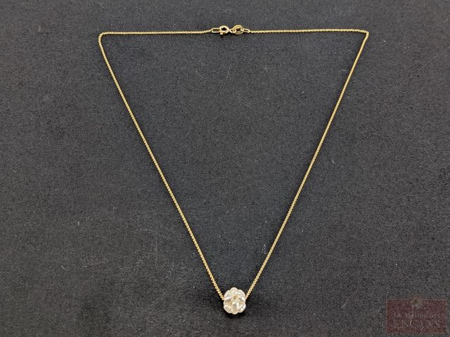Lot # 118 - Chaine et pendentif en or 10k avec perles, la chaine mesurant 14 pouces de longueur