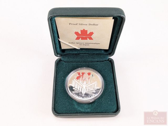Dollar canadien épreuve année 2000 en argent, dans son coffret, ainsi que pièce d'un dollar 1998 en argent sterling