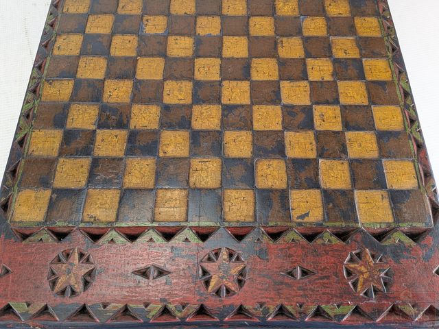 Lot # 31 - Damier sculpté sur bois et peint à la main, mesurant 22x16 pouces