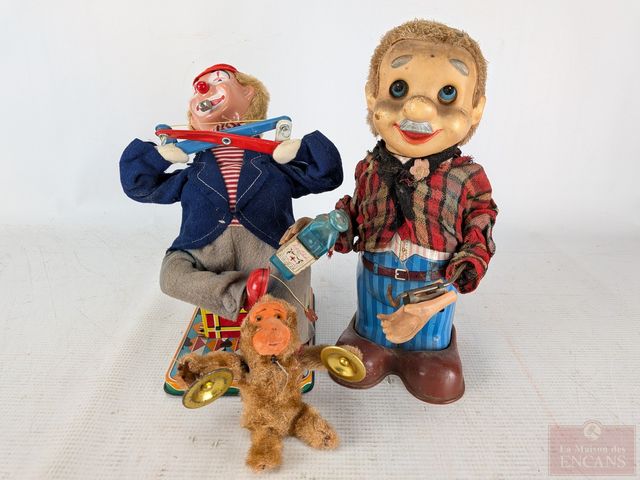 Lot # 11 - Trois jouets mécaniques vintages, le plus grand mesurant 10 pouces de hauteur