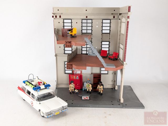 Lot # 43 - Lot de figurines et voiture Ghostbusters avec accessoires et décors, la voiture mesurant 12.5 pouces de longueur