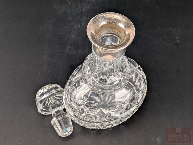 Lot # 37 - Carafe en cristal avec éléments en argent sterling Birks, mesurant 10 pouces de hauteur