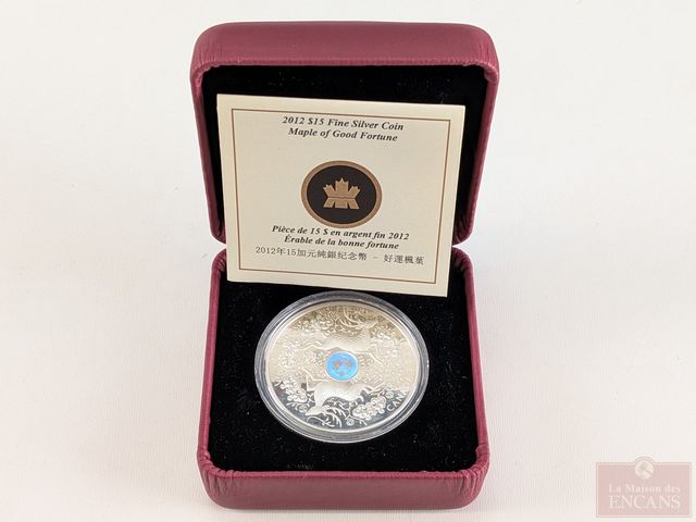 Lot # 110 - Pièce canadienne de quinze dollars 2012 en argent pur 9999, encapsulée, dans son coffret avec certificat, sans taxes