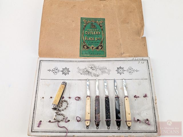 Présentoir de vendeur de couteau de poche Black Bros., datant de la fin du 19eme/début du 20eme siècle et mesurant 7.5 pouces de largeur