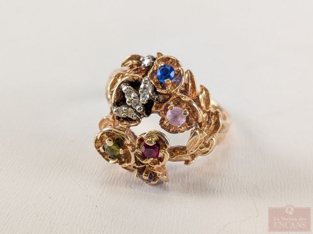 Lot # 82 - Bague en or 14k sertie de pierres, dont diamant, rubis et saphirs, taille 6.5