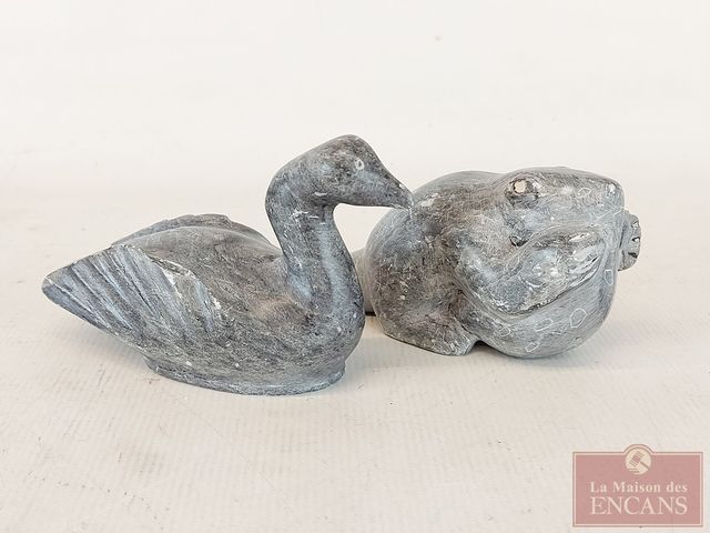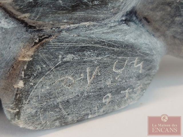Lot # 132 - Deux sculptures inuites sculptées sur pierre à savon signées - la plus grande mesurant 5 pouces de hauteur SOLD