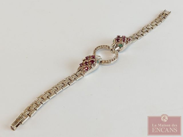 Lot # 83 - Bracelet en argent serti de rubis et d'émeraudes naturels - mesurant 7 pouces de longueur SOLD
