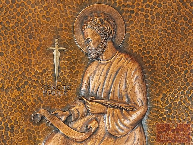 Plaque en cuivre et fer forgé Sancte Paule - mesurant 25x20 pouces