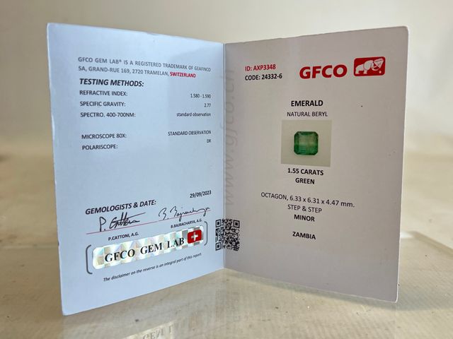 Lot # 101 - Émeraude naturelle de 1.55 carats provenant de Zambie avec certificat SOLD