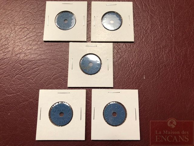 Lot # 152 - 5 Jetons de Rationnement pour la viande de la 2ième Guerre Mondiale CANCELLED
