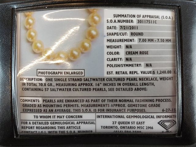 Lot # 160 - Lot de 57 perles de cultures - totalisant 30.8 grammes - mesurant 16 pouces de longueur - environ 7mm de diamètre SOLD