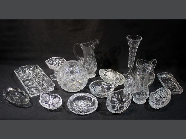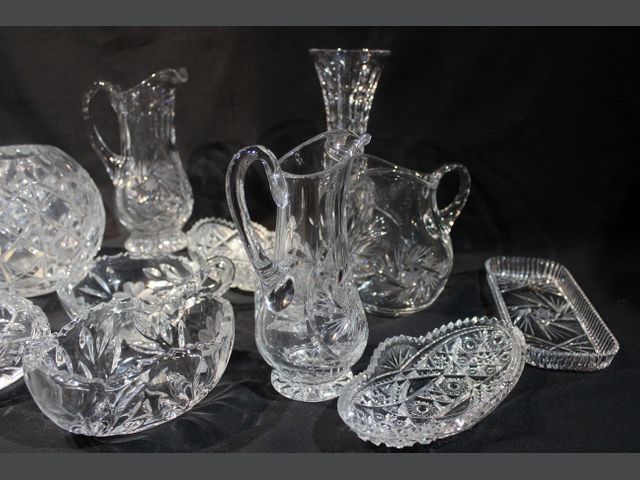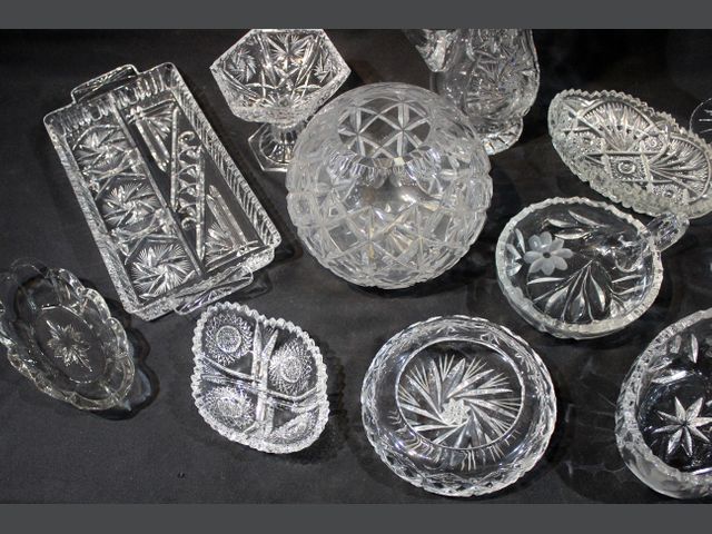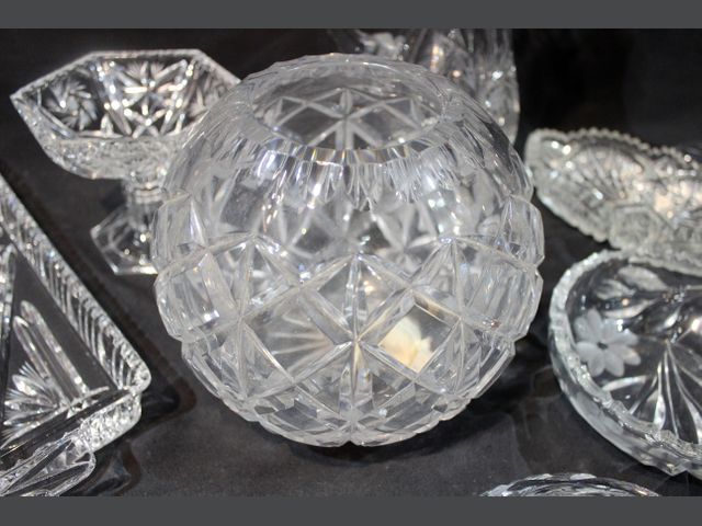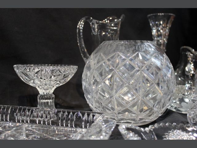 Lot # 29 - VERRE TAILLÉ Important lot de verre taillé divers comprenant coupelles, pichets, tasses, vases, bonbonnières, plats de service… Quelques égrenures. CANCELLED