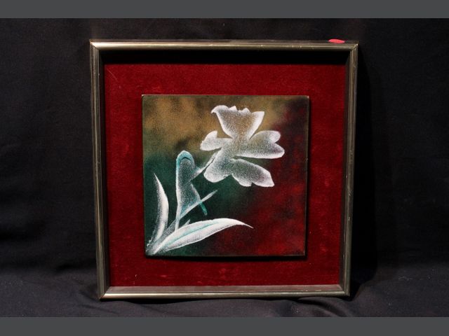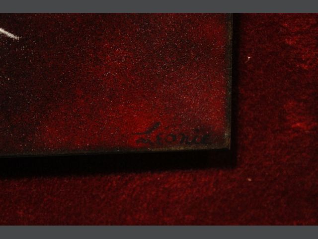 Lot # 166 - ÉCOLE CANADIENNE (Xxe) Œuvre sur céramique émaillée, pièce encadrée et signée au bas à droite Léonie. H 20 cm L_20 CANCELLED