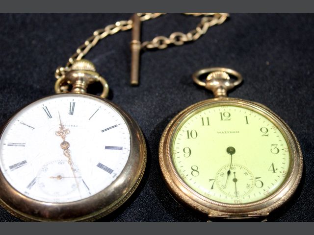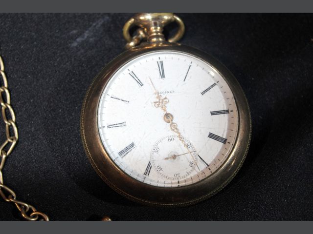 Lot # 61 - Deux MONTRES GOUSSET, une LONGINES en métal avec sa châtelaine du début Xxe siècle, l'autre WALTHAM en métal (manque une aiguille, verre désolidarisé). SOLD