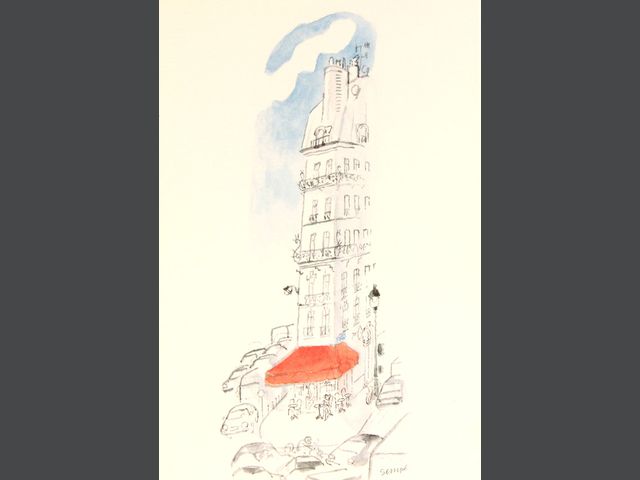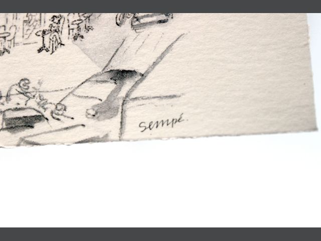 Lot # 9 - Lot de 2 pièces encadrées : - Une impression offset de SEMPÉ (Galerie Marine Goisseaux) H_ 15 cm L_ 10 cm - Une aquarelle signée H_14 cm L_9 cm (à vue) SOLD