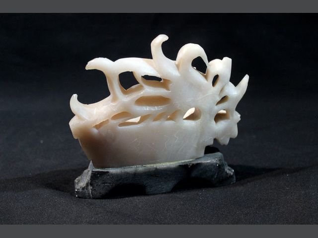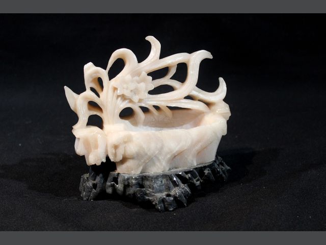 Lot # 15 - CHINE. Sculpture en pierre dure blanche sur son socle en pierre. Manques, petits éclats. H_14 cm L_17 cm P_7 cm CANCELLED