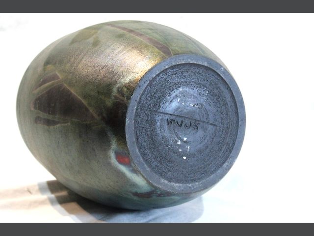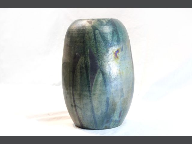 Lot # 87 - Truss ROEST-CHAPMAN (Actif) Vase en céramique vert à reflet irisé, signature au dessou. H_27 cm Truss Roest-Champan créé des pièces sculpturales en utilisant l'art du Raky, une technique de cuisson d'origine japonaise. SOLD