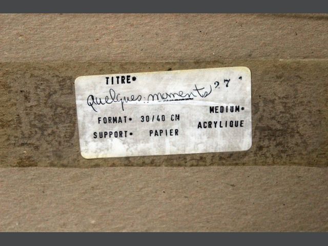 Lot # 54 - Sylvain GOUGEON (XXe-XXIe) Quelques moments Acrylique sur papier signée et datée 1995 au bas à droite. H_30 cm L_40 cm SOLD
