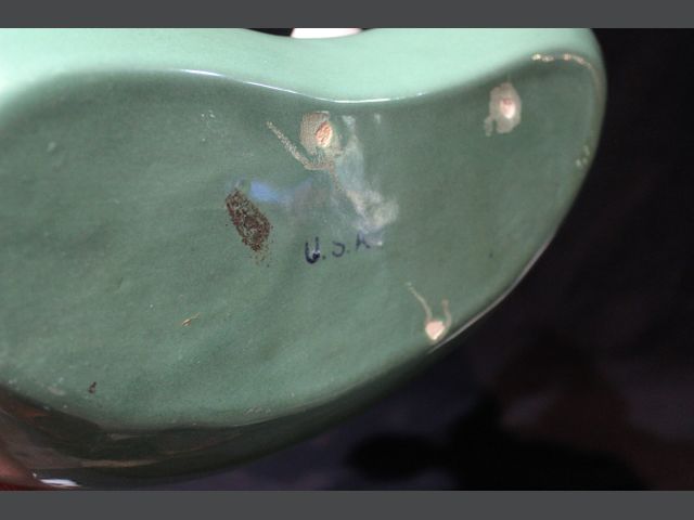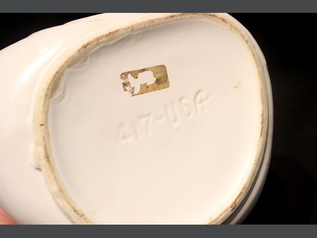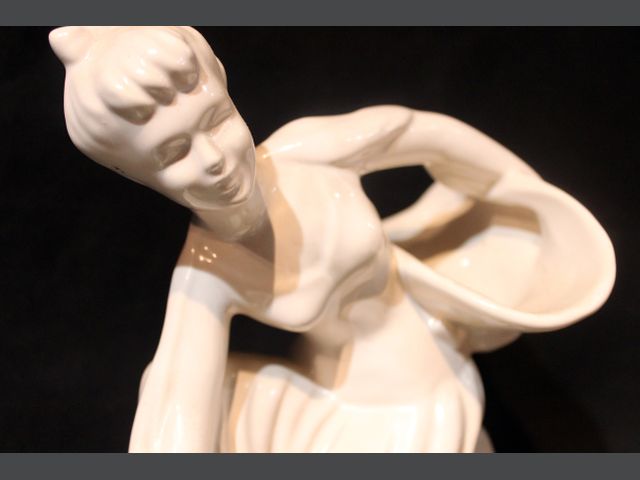 Lot # 17 - Deux petits bassins en céramique, travail américain du Xxe siècle. Femme accroupie H_27 cm L_35 cm Religieuse H_25 cm L_20 cm Petits éclats, égrenures. CANCELLED