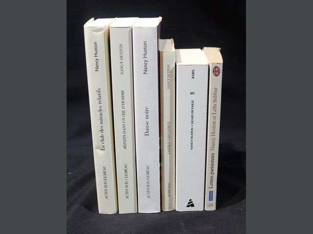 Lot # 64 - NANCY HUSTON Ensemble de 6 romans : - Le club des miracles relatifs (Actes Sud/Leméac) - Reflets dans un œil d'homme (Actes Sud/Leméac) - Danse noire (Actes Sud) - L'espèce fabulatrice (Boréal) - Lignes de faille (Babel) - Lettres parisiennes (J'ai lu) SOLD