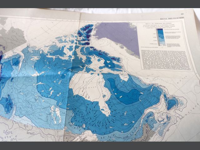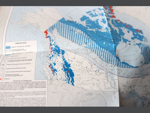 Lot # 40 - GÉOGRAPHIE Trois cartes géographiques : - Carte du monde - Géographie et Politique, National Geographic, 1975 - Carte du Canada - Pergélisol, Atlas National du Canada, 1973 - Carte du Canada - Recul des glaciers, Atlas National du Canada, 1973 SOLD