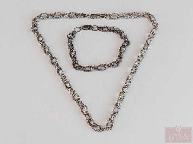 Lot # 108 - Ensemble comprenant chaine et bracelet en argent, la chaine mesurant 16 pouces de longueur et le bracelet mesurant 7 pouces de longueur VENDU