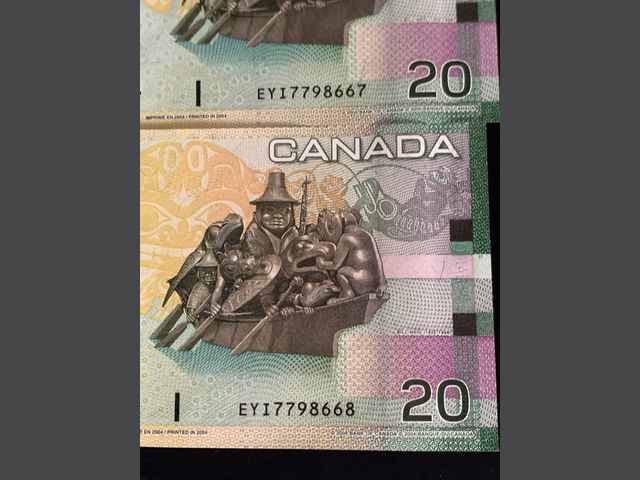 Lot # 134 - Série de 4 billets de 20$ consécutifs neuf jamais circulés SOLD