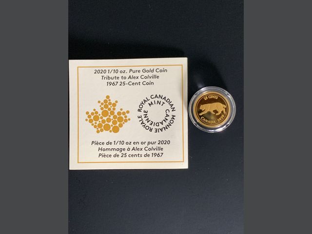 Lot # 93 - 1/10 d'onces d'or pur représente un 0,25$ 1967 sans taxes VENDU
