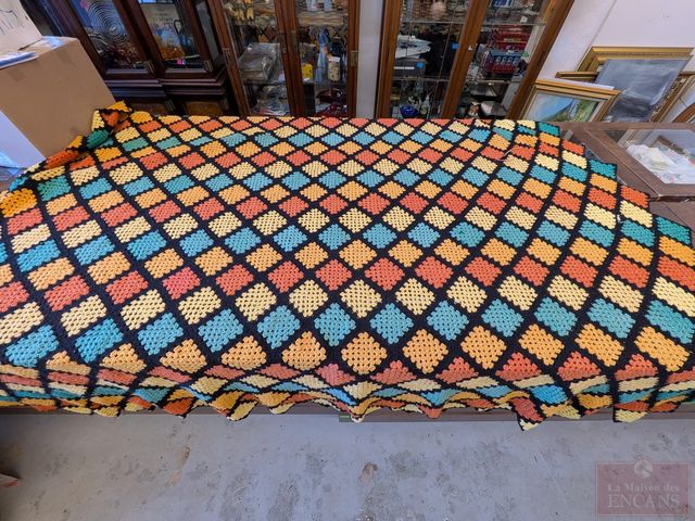 Lot # 38 - Couverture artisanale québécoise réalisée au crochet, mesurant 100x88 pouces