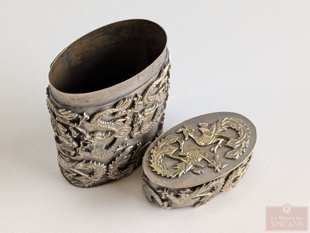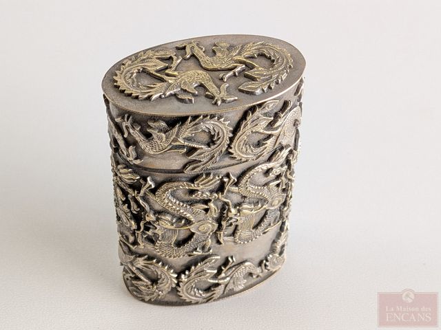 Lot # 88 - Boitier tibétain en argent mesurant 2.5 pouces de hauteur