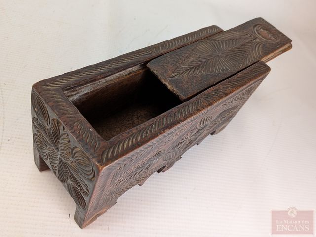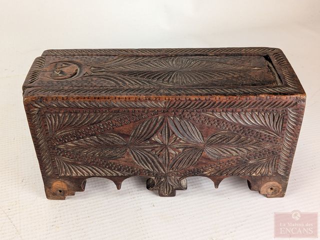 Superbe coffret oriental sculpté sur bois, mesurant 8x3x4 pouces
