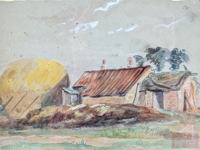 Lot # 166 - Charles Édouard MASSON-HUOT(1855-1930) - Aquarelle signée, mesurant 8x10 pouces et titrée Barn by Haystack SOLD