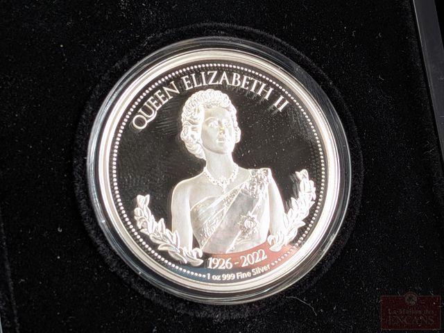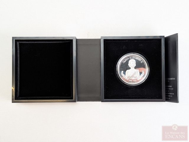Pièce néo-zélandaise d'une once d'argent pur 999 reine Élisabeth II, encapsulée, dans son coffret, dans taxes