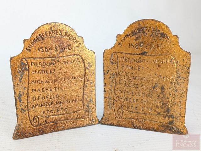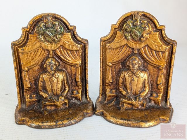 Lot # 131 - Paire d'anciens appuis-livres en métal, représentant Shakespeare et mesurant 4 pouces de hauteur SOLD