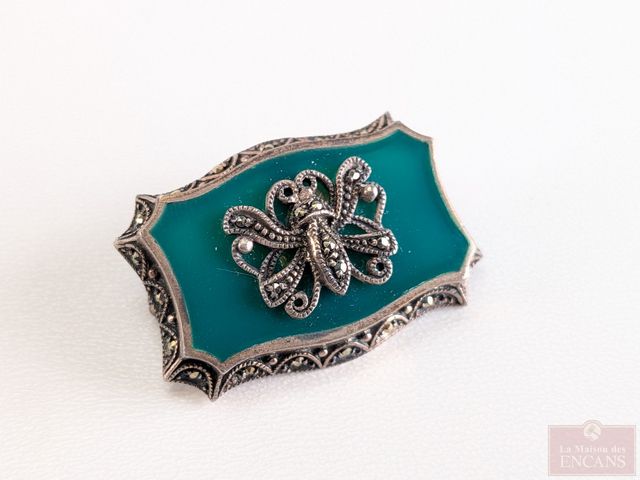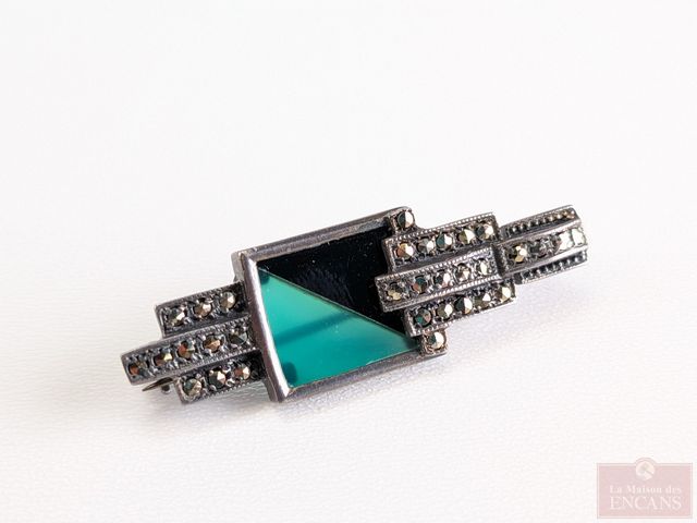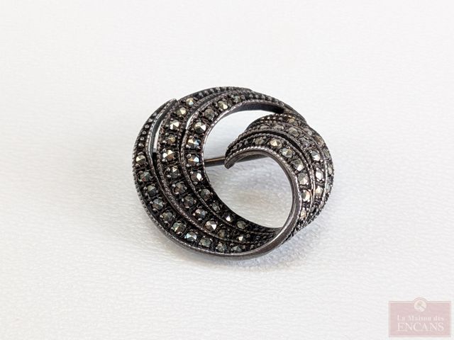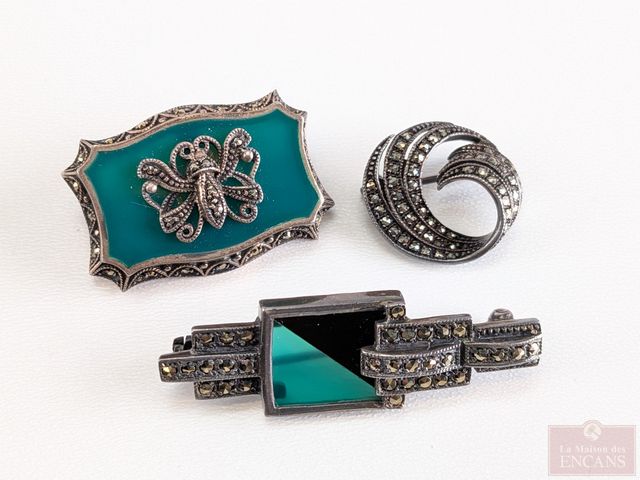 Lot # 106 - Lot de trois broches en argent serties de marcassites, datant du début du 20eme siècle, la plus grande mesurant 1.75 pouces