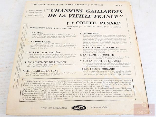 Lot # 44 - Deux disques vinyles trente-trois tours vintages Chansons gaillardes de Colette Renard